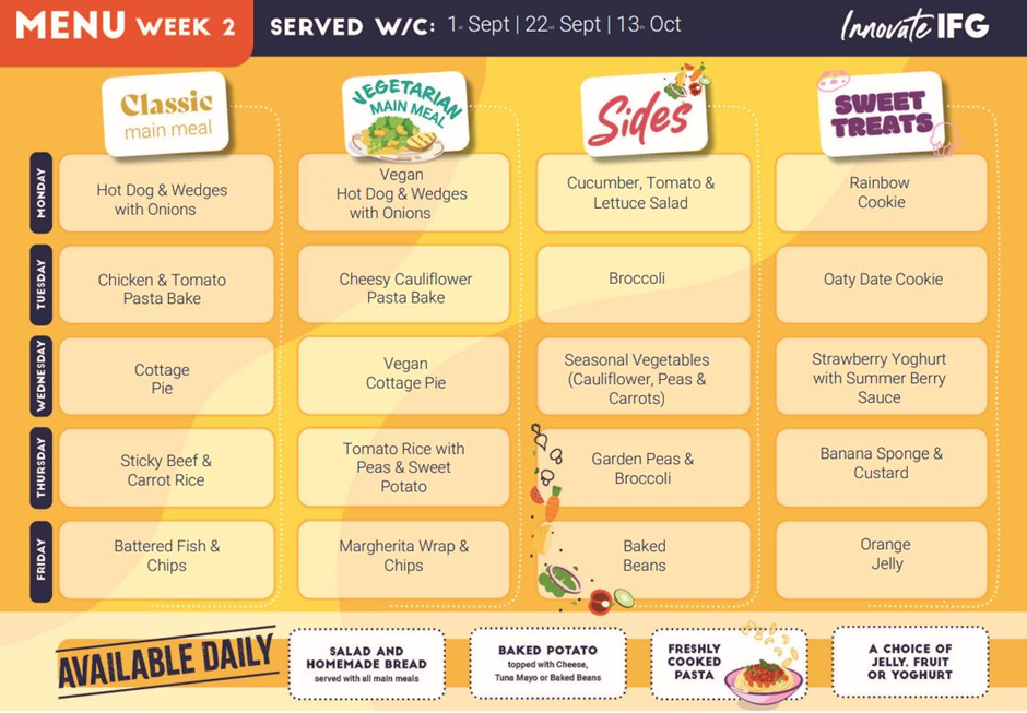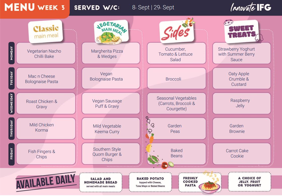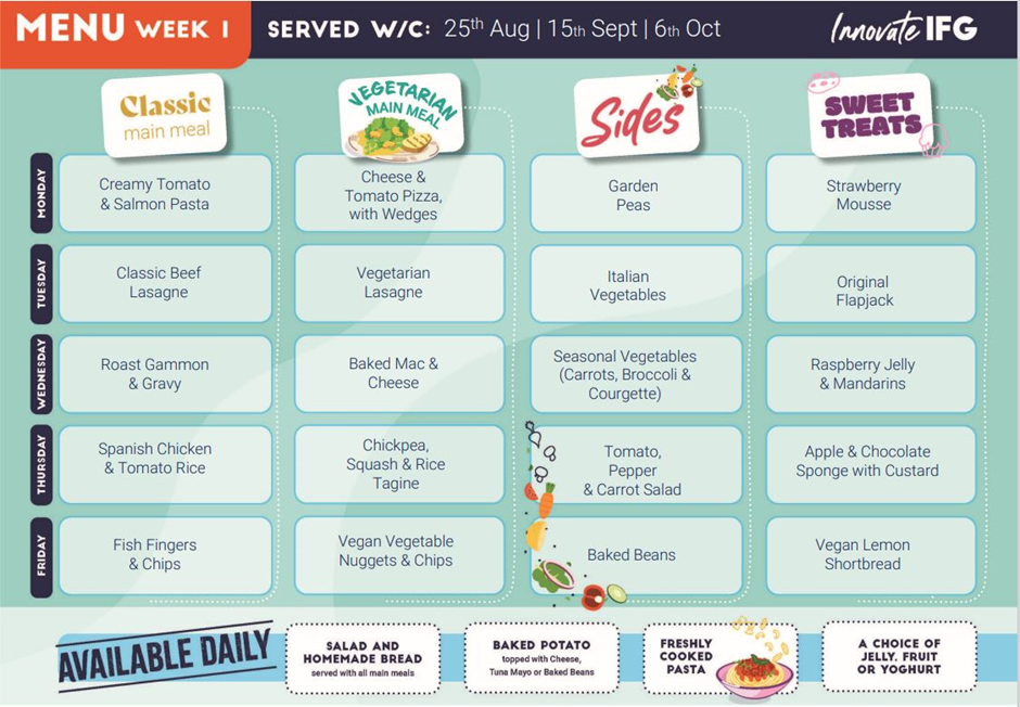 Find out what your children will be enjoying at dinner time in the Menus below from Innovate.